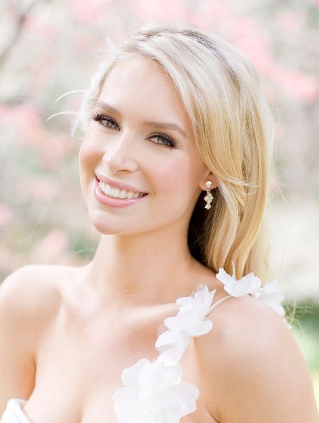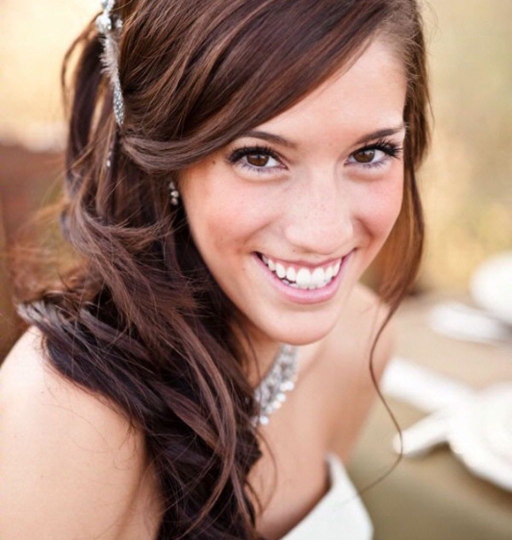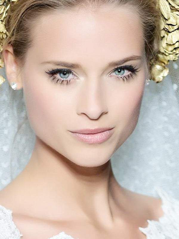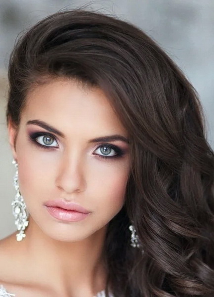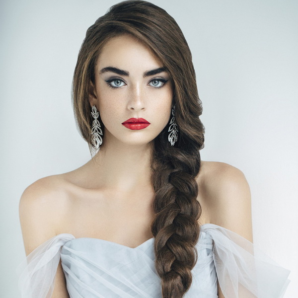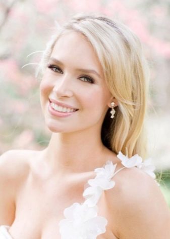 In order to harmoniously complement the hairstyle of a girl, it is recommended to choose light shades of foundation and shadows for make-up. Due to the neutral colors in cosmetics you can avoid unwanted contrast during the wedding photo session. Blue-eyed beauties are recommended to paint the strands in bright colors, they are favorably accentuated by shades of chocolate, orange and yellow. Gray-eyed girls fit shades of blue and purple.