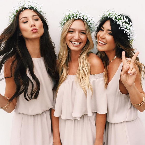 The bridesmaid is recommended to stop the choice on a more simplified version, since the bride should have the most beautiful look. Given this, girls should not sprinkle strands of sparkles and use white barrettes or flower buds as decorations. Color ribbons or rims are a good choice for these styling.