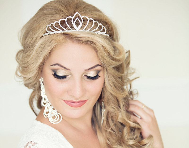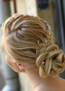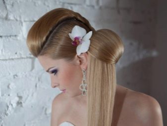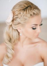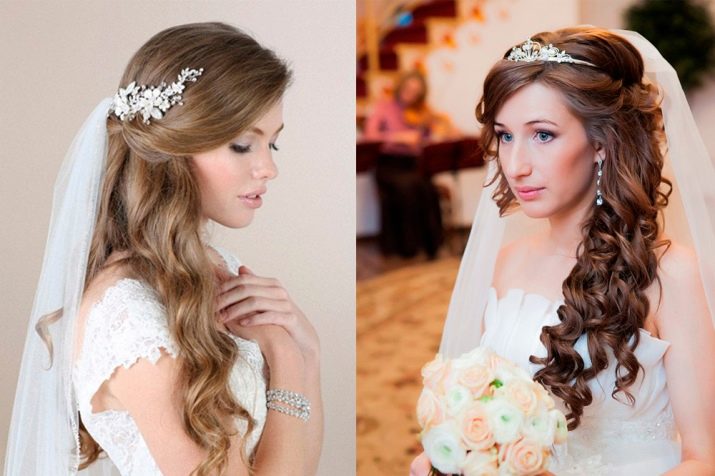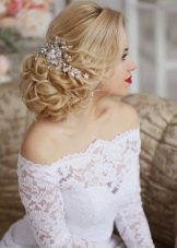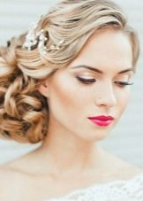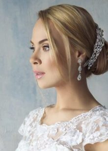 It is equally important that the hairstyle is combined not only with the style of the dress, but also with its style. So, if you stopped at a magnificent, "princess" dress, your hair will have to be lifted, and higher. Indeed, as we know, not a single princess, either in a fairy tale or in life, married with her hair loose. Hairpins, pins, bezel, tiara can be used, any complexity of the knot being created is acceptable.