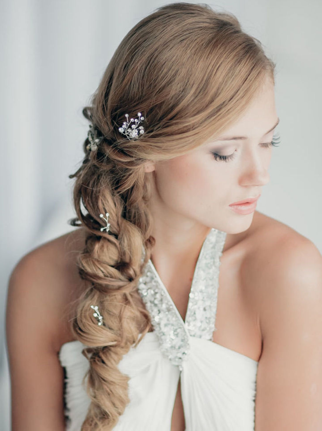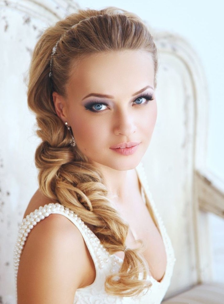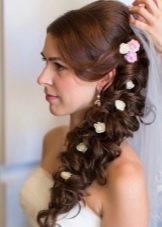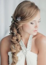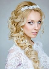 Among the wedding hairstyles styling to the side stand out as the most simple and at the same time original. To do this, it takes not so much time, as, for example, for a complex, heavy knot at the back of the head or at the crown. In this case, all the beauty of the hair is in sight, not covered with a veil.