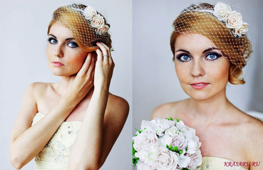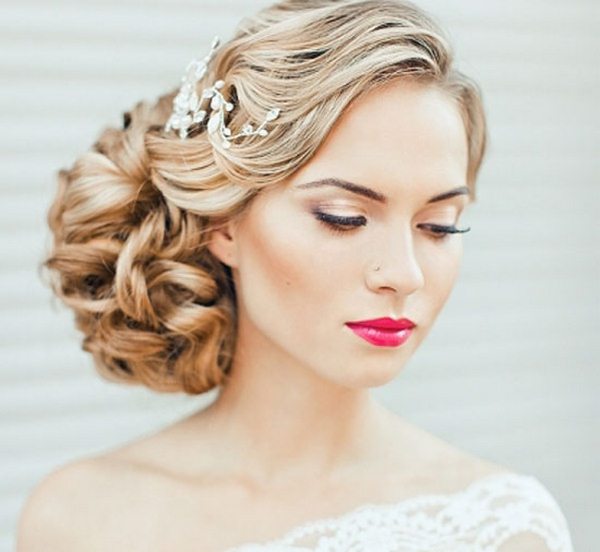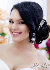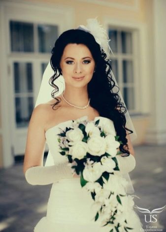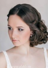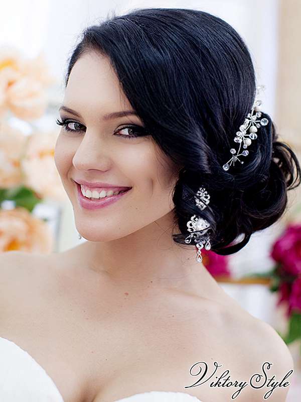 As for brides with short hair, it is somewhat more difficult for them to create a styling, but there are interesting options for them. Having fastened the strands from one side with hairpins or with the help of weaving, on the other side it is necessary to form curls or retrovany.
