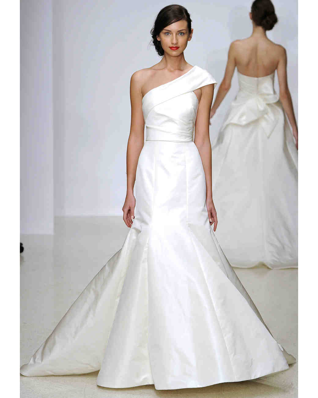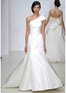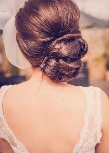 Having chosen the luxurious "mermaid" dress, you get the opportunity to create a sophisticated aristocratic hairstyle. All kinds of low beams (except for disheveled ones) are suitable, as well as large, stacked locks on one side.