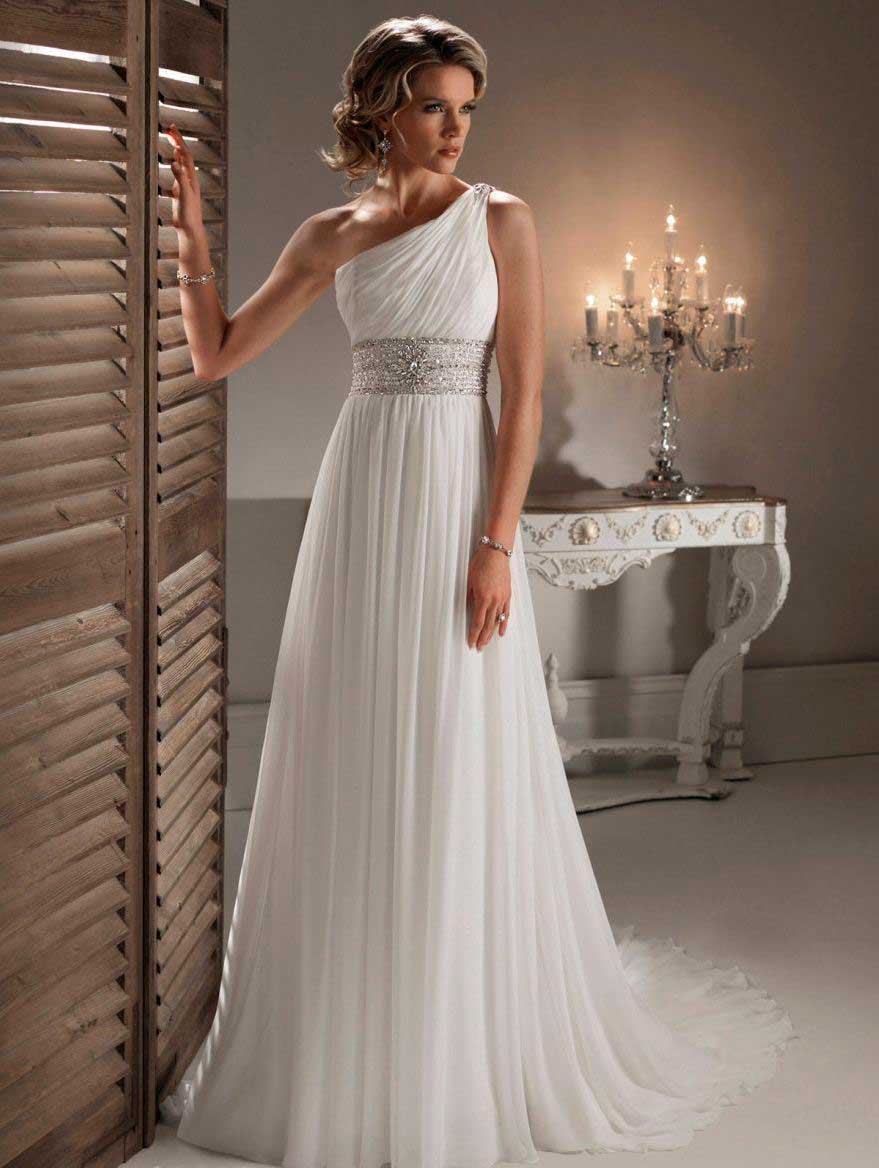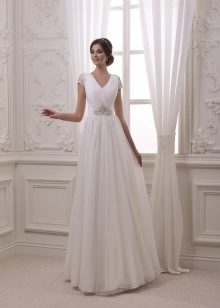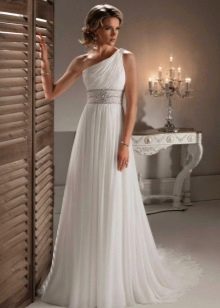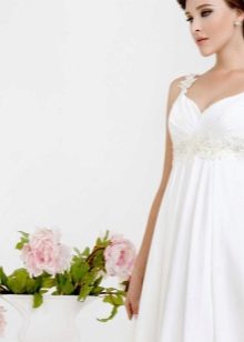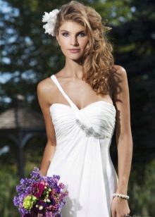 Dress in the Greek style will not allow you to wear a veil, but in a favorable light will demonstrate the beauty of your hair. You can use any, the most difficult weaving, as well as their combination, decorating the hair with flowers and headbands. And deciding to open the shoulders - with the help of straps on the shoulders or the complete absence of them, you should not dissolve the hair so that the beauty of the neck and collarbone is not hidden by the hairstyle.