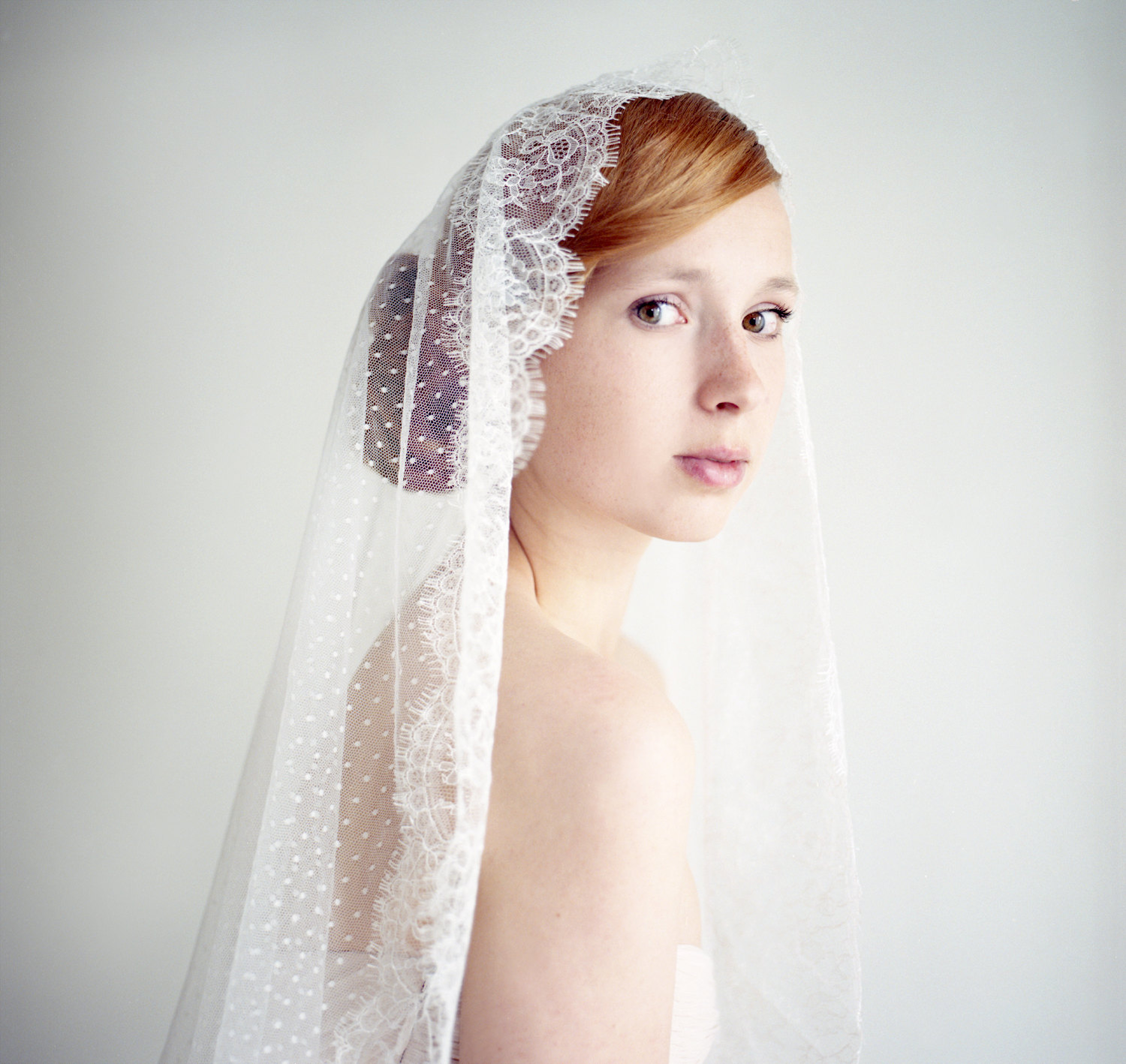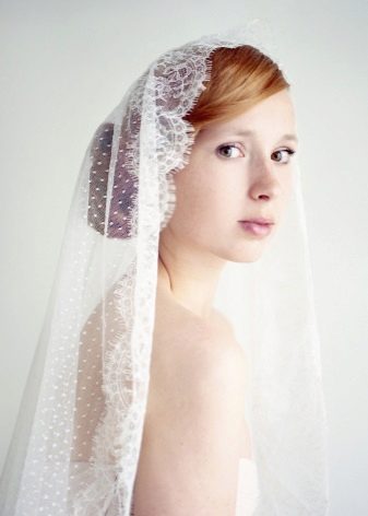 For laying on one side also suitable veil mantilla - single-layer thin, with beautiful lace trim on the edge.