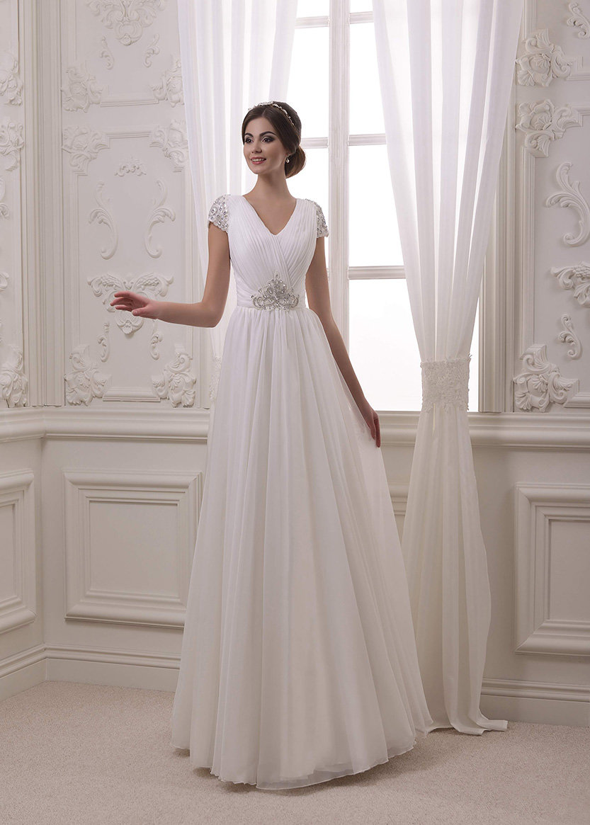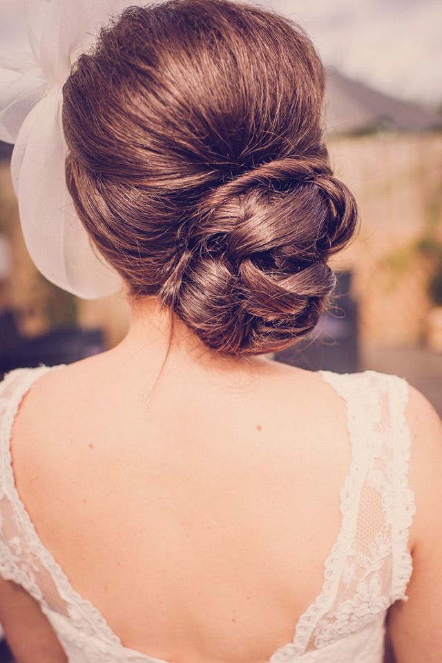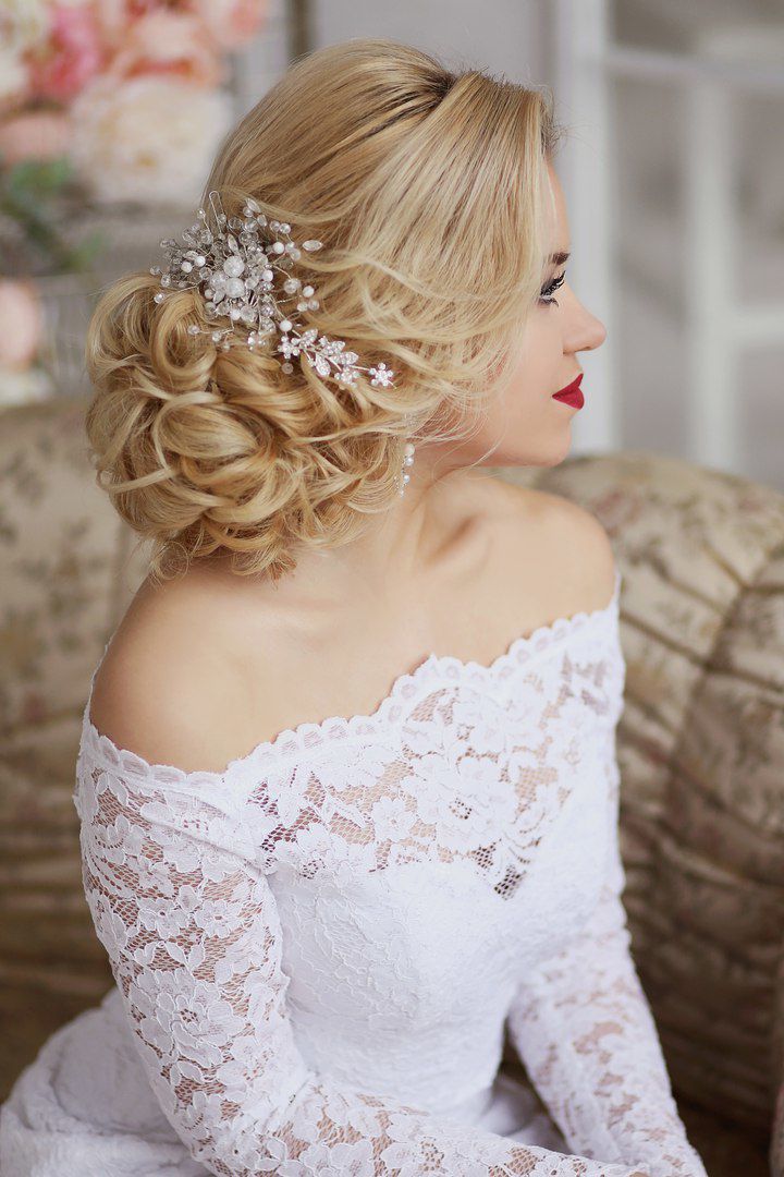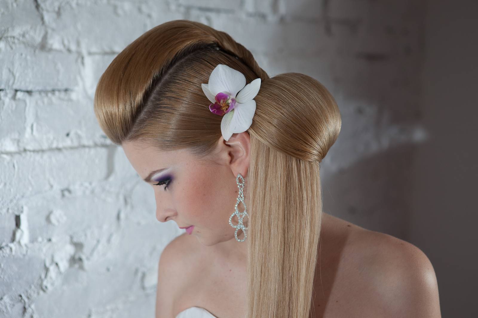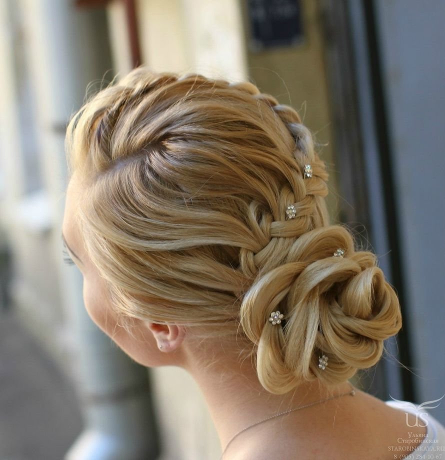 If your dress is tightly closed on top, then your hair will have to be removed. Otherwise, it will give the impression that your neck is too short and the proportions of your body are visually impaired. The same should be done if the top of the dress is decorated with intricate patterns, lace, otherwise the beauty of the bodice will simply not be visible.