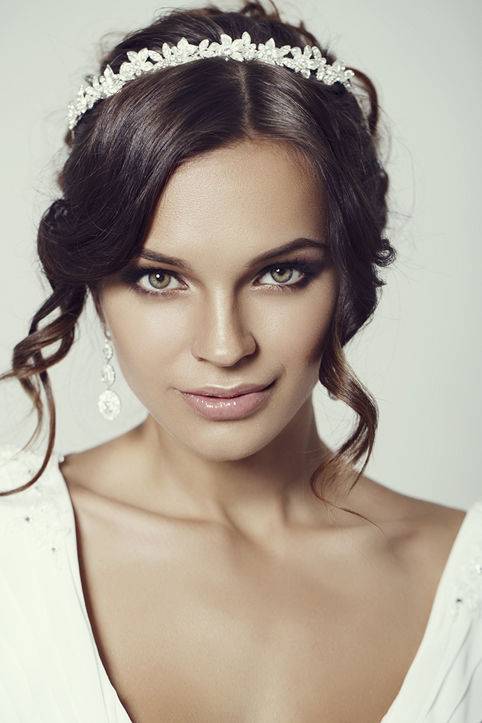For a wedding event, many brides prefer delicate and romantic images, for example, in the Greek style. Hair must be decorated with a golden rim, left flowing or put in a neat low bun. A light dress with an open back, pumps and a few suitable jewelry will help to complement the image. In the case when there is a veil in the image, the styling may be minimal. It is enough to create curls and remove them from the face, and a delicate accessory that combines both fabric and elegant decoration will complete all the work.