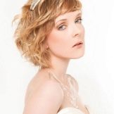 Very directly looks short haircut, laid in an artistic mess. She rejuvenates her face, making him perky and sweet. Lace ribbon bandage or bezel with floral decoration, passing through the center of the forehead, symbolic for the style "Empire." To it are attached large curls. Such decorations create the image of a gentle nymph.