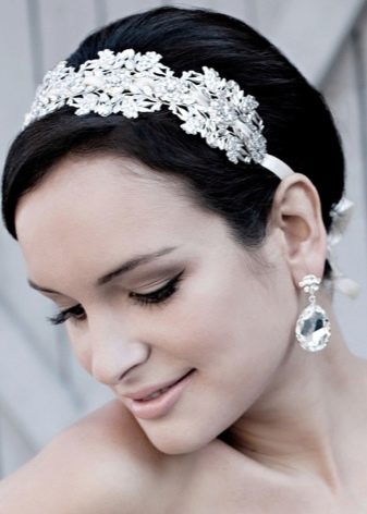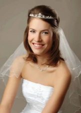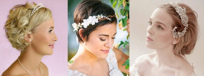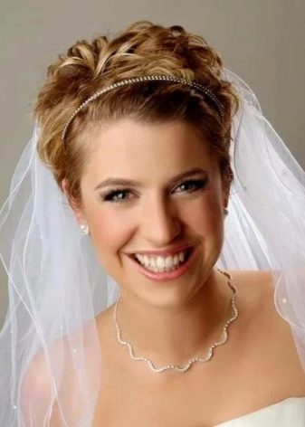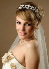 Even a short-haired bride can be turned into a real princess. It is enough to use a tiara. It should be understood that the higher it is, the more hair will be needed, since for its styling it is necessary to comb the hair upwards, creating a certain volume, a throne for the diadem.