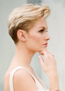 - Minimalism. Very short haircuts look spectacular if only one bright accessory is selected for decoration. Stylists are not advised to use more, so as not to burden the image.