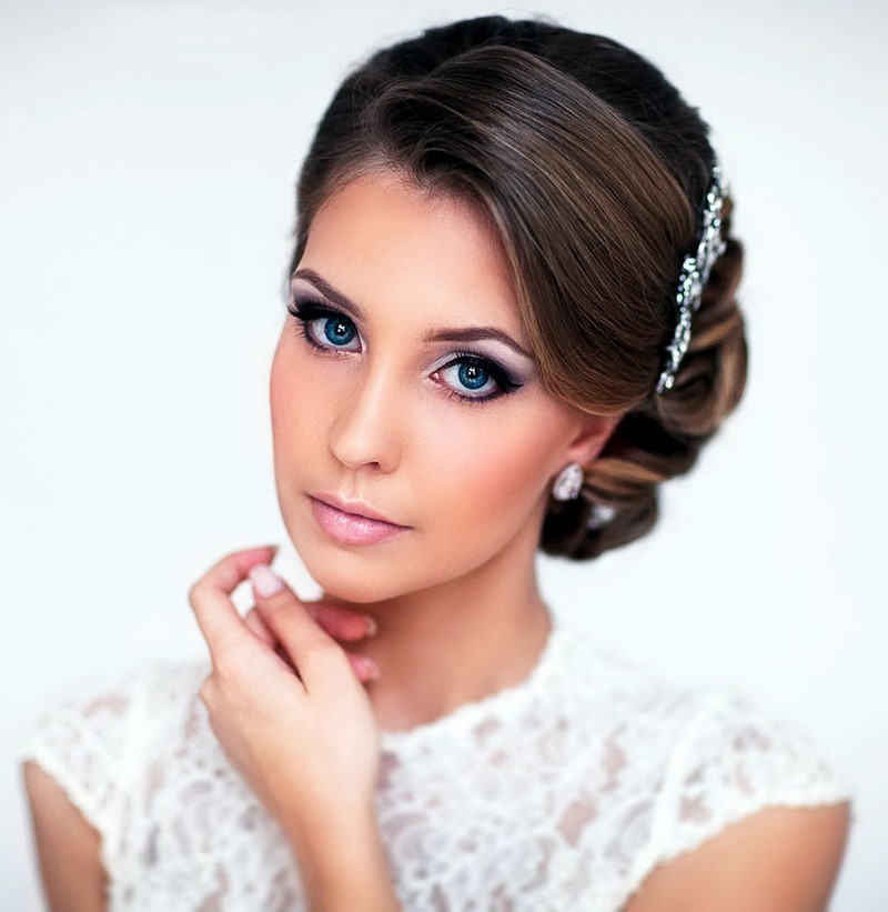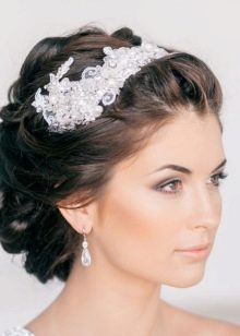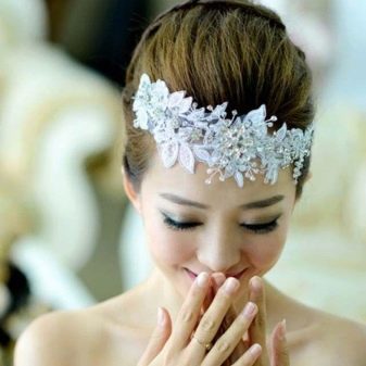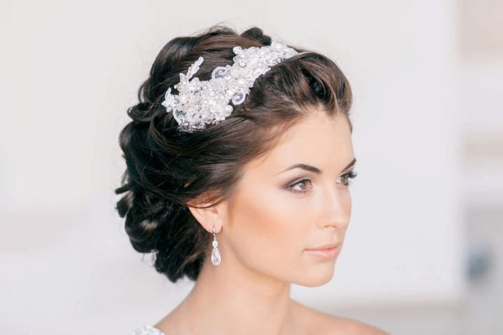 Stylists are recommended to blondes to use fine things as accessories: headbands, combs, tiaras. But when creating a certain image, lace bandages are also used, large single flowers made of fabric with beads or natural wreaths. Light large hairpins on dark hair will create original exquisite images, individual in each case. Looks great on brunette brunettes and tiaras.