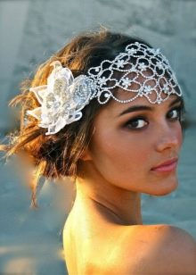 - You can tie the original lace bandage. Or, in the case of a cardinal length of the hair, with its help to attach a veil.
