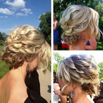 Hairstyle in the Greek style is popular at all times. For short hair it is quite easy to perform, even without the means for styling. To do this, the hair curls on curling medium thickness, and then begin to fantasize. The bang is better to lay the wave on one side, and fix the remaining curls from behind. Then the hair is intercepted in the middle of the forehead with a narrow bandage or tiara, while the front strands can be released to frame the face. If the length allows, we can add weaving to the hairstyle or use false hair for these purposes.