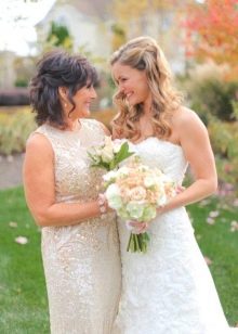 If the mother of the bride has bangs, then she can be beautifully laid on the side or combed back, decorated with a small accessory.