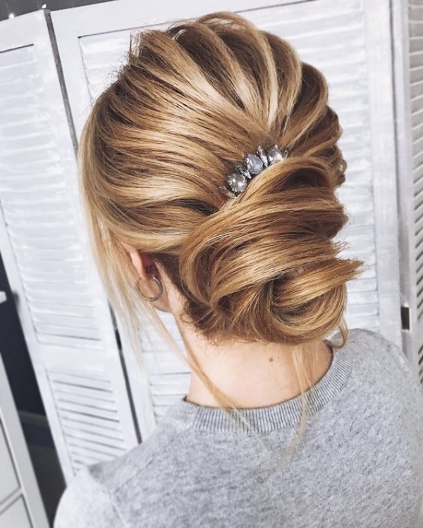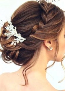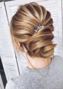 - High styling. As a rule, such hairstyles emphasize the status of women and their elegance. High styling is best done on medium length hair. Be sure to recommend to pay attention to the famous hairstyle "Shell". High hairstyles with bouffants are often complemented with small decorative hairpins or hoops.