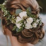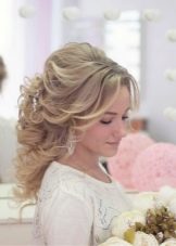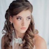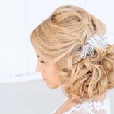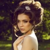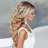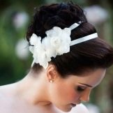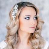 The bride's hair should look at ease. For these purposes, flowers or ribbons are sometimes interwoven, hair adorned with rims and tiaras. Usually the length of the shoulders is enough to make a wonderful, elegant hairstyle. Many suggestions on the use of veils. Depending on its length and styling varies.