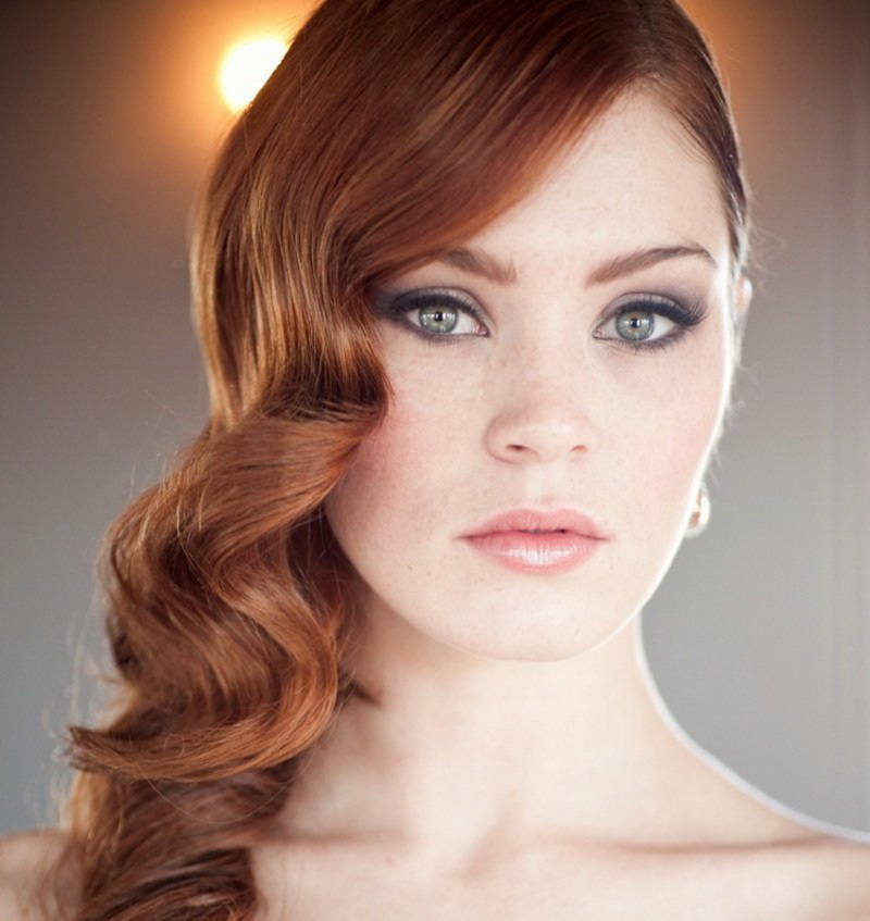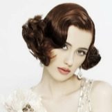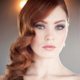 - Hollywood waves - the classic type of hairstyle related to retrostyle. He has inherent large curls of the same size, their free movement, naturalness, expressed in soft lines. According to the classical canons, the waves were stacked on one side, but now it is allowed in both, and the parting can be oblique or straight. For hair of medium length hairstyle looks charming and stylish. For younger persons, smooth soft lines are appropriate, without steep creases. Then the image is more romantic. An outfit with an open line of shoulders and neck that demonstrates vulnerability and tenderness will help add femininity.