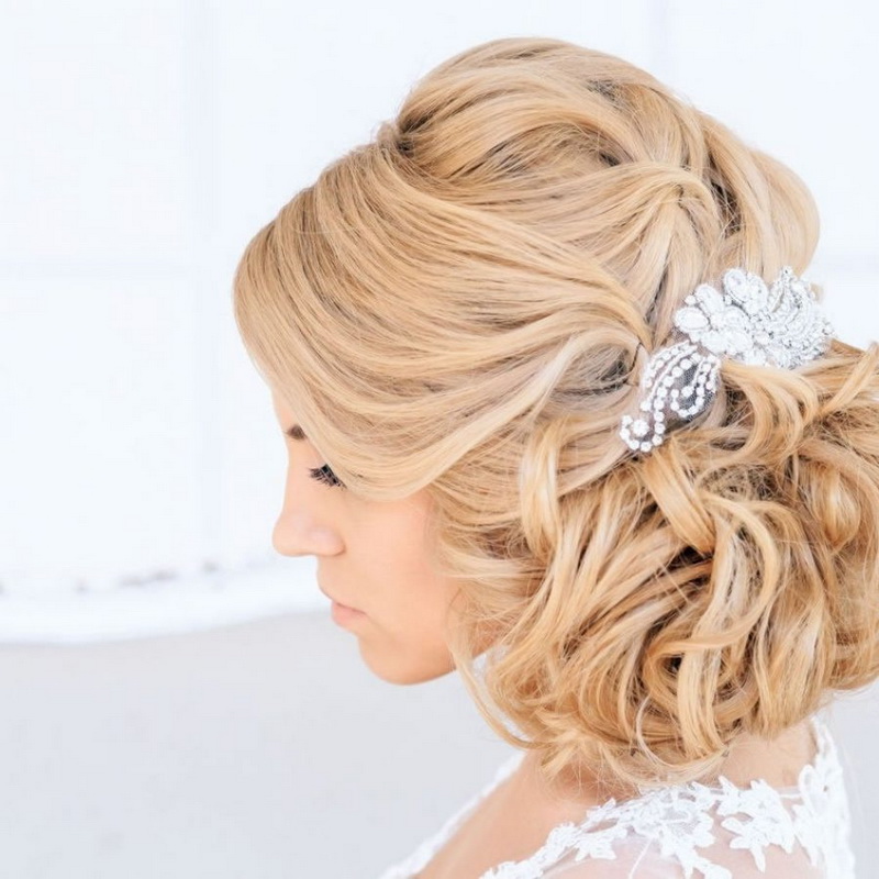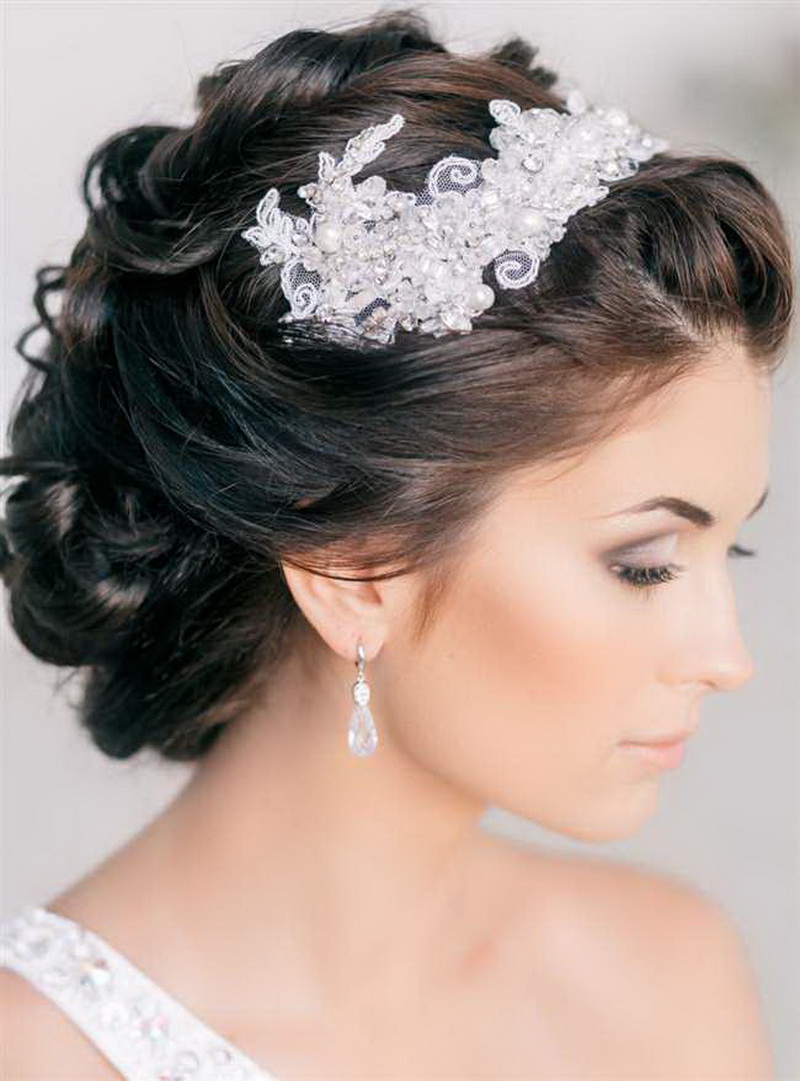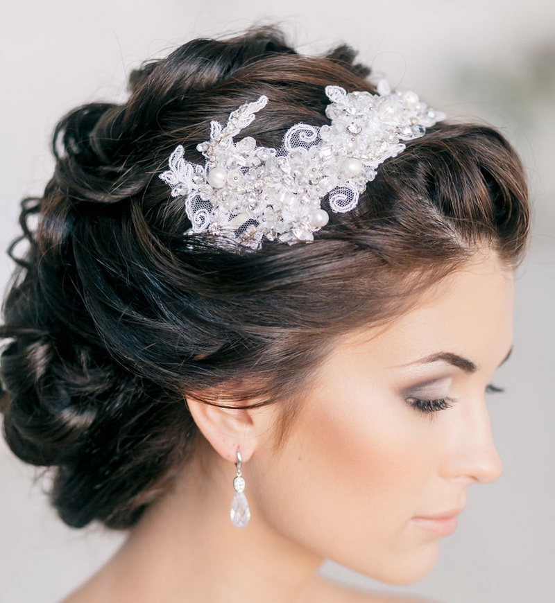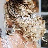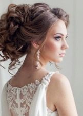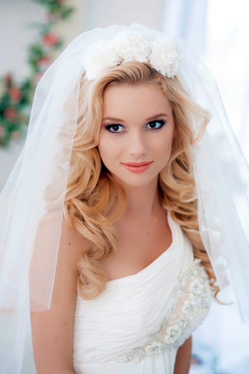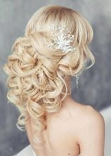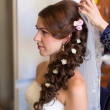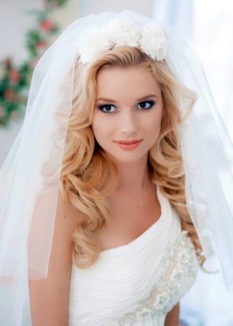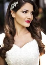 If the bride has a lot of curls, then they are always difficult to style. It is rather difficult to straighten them, so it is better to put them in a neat haircut with hairpins and hairpins, fix them with lacquer and decorate them with a veil or tiara. In the case of natural curls that lie in large waves, hairstyles are suitable using various styling tools. They can curl on large curlers to give them uniformity.