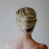 - Classic beam at the back of the head. It can be made using a special fixture - a roller. Strands gather in the back of the tail, then evenly wound on the roller, closing it completely. The resulting bundle is fixed with pins and the entire hairstyle is fixed with varnish.