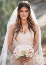 Traditional wedding decoration remains veil. She is of different types and perfectly complements the hair.