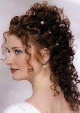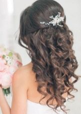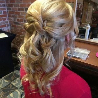 - Half-curls. The hair is twisted from the bottom to half the length with the help of a styler. Then two locks on the right and left of the face are joined at the back of the head, you can twist them beforehand. All hairstyle fixed varnish.