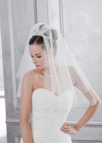 - Bunk veil - the most popular model. It is suitable for both civil and church ceremonies. It combines lush, well-fixed hair. Laying must be carefully fixed so that the veil is not disheveled. Popular hairstyles with a diadem, individual flowers or a wreath.