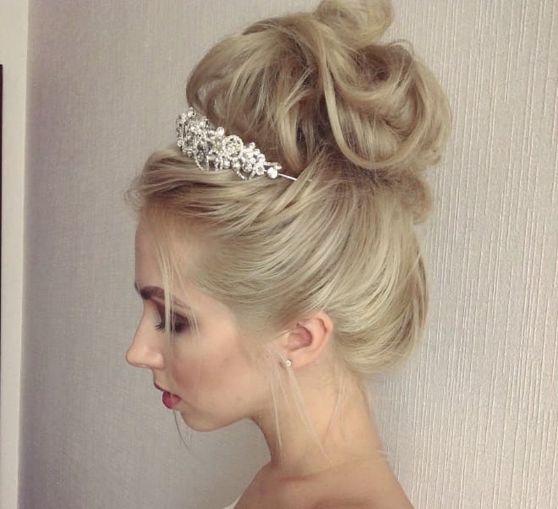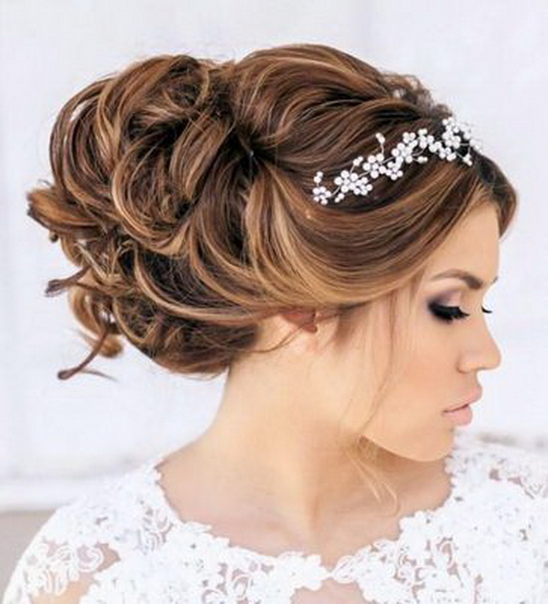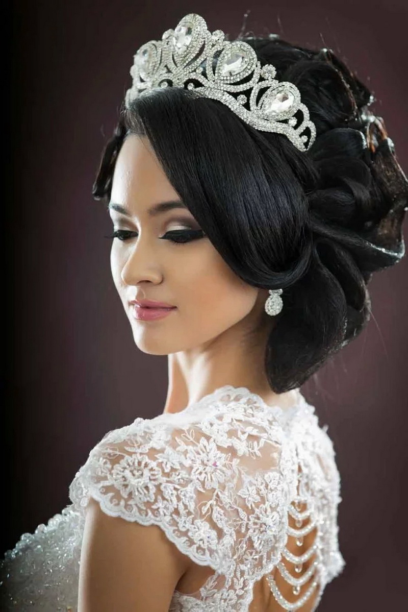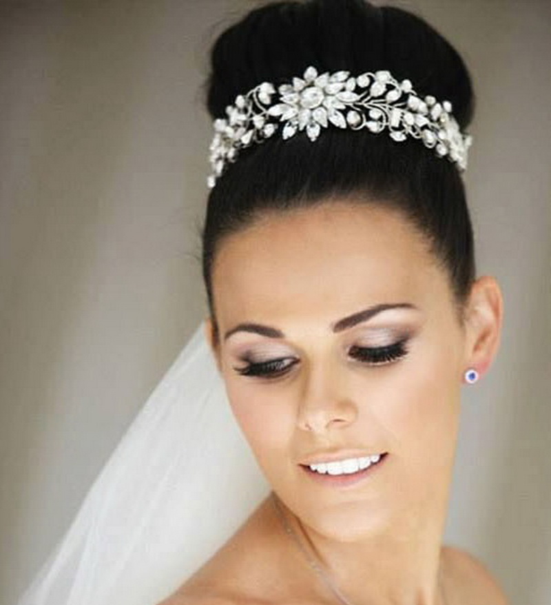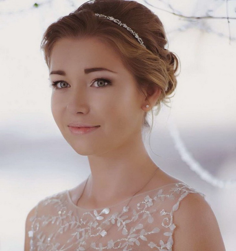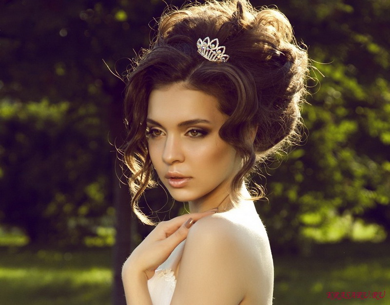 Hairstyles with diadems turn the bride into a princess.