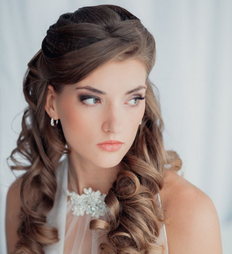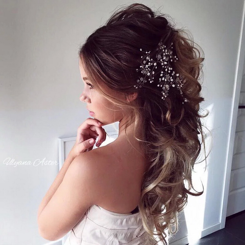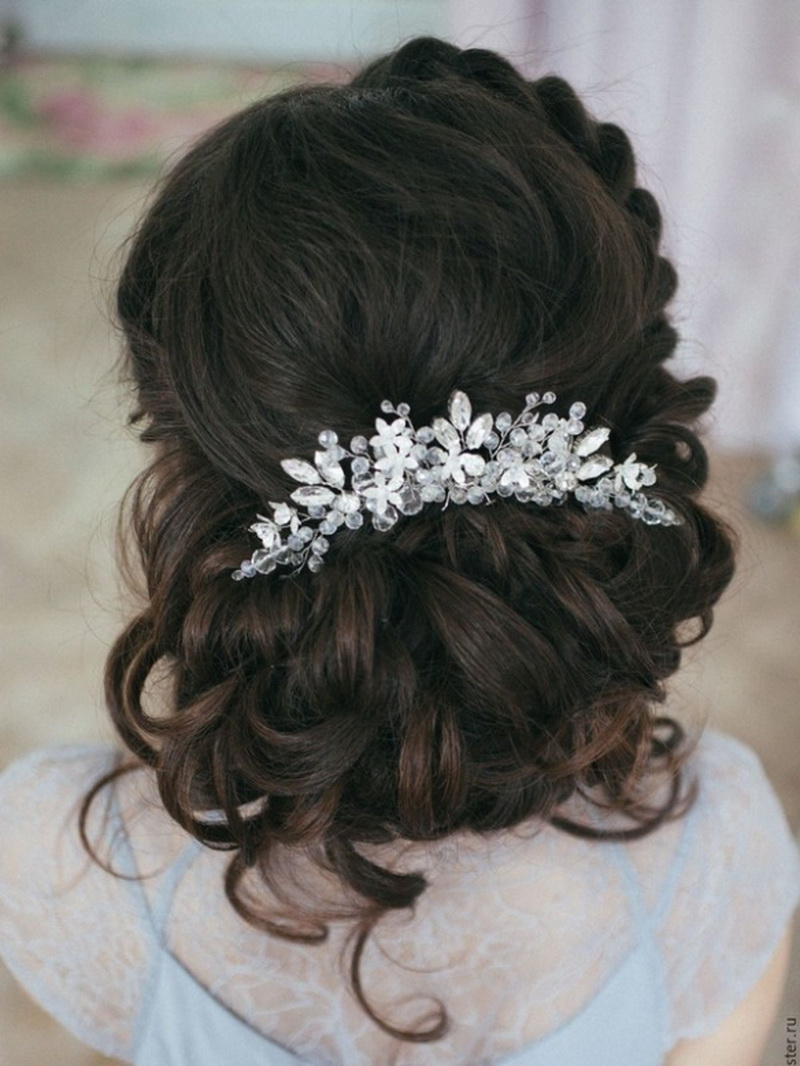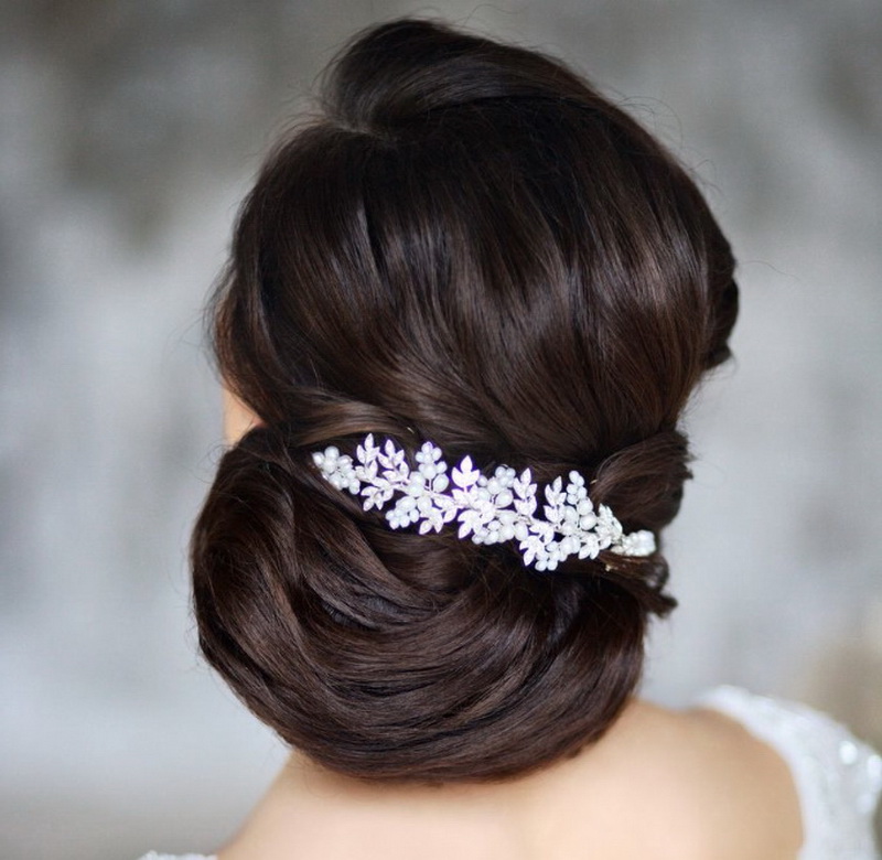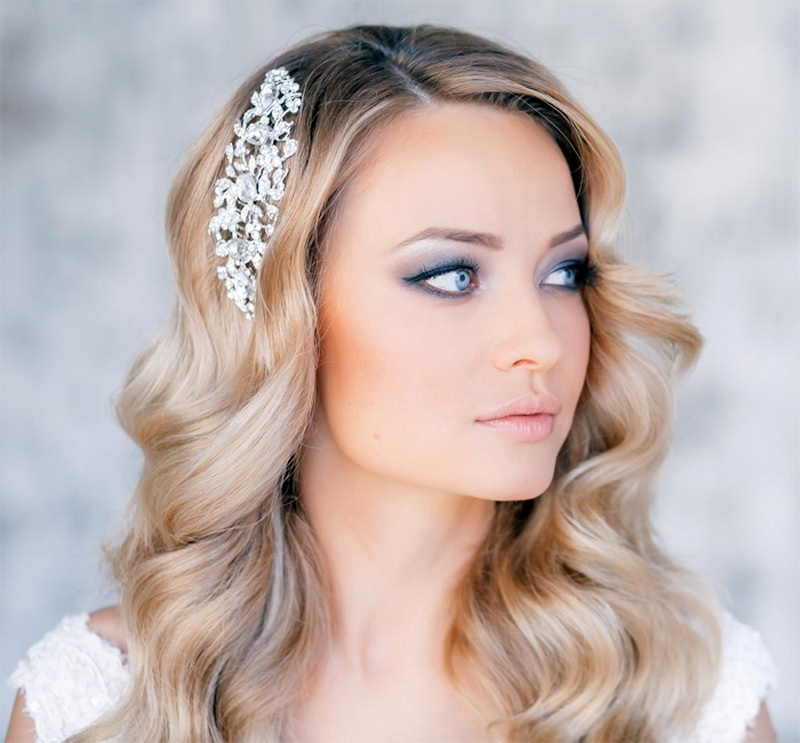 If the hair is straight, you can easily twist it with the help of various devices: curling irons, hair curlers, stylers. But if the bride is the owner of beautiful, smooth and thick hair that cast a healthy shine, but do not hide or mask them. Their beautiful view will be the decoration of any outfit. Such hair can either be left flowing, slightly emphasizing a string of pearls, or laid in a sleek elegant bundle, decorated with a comb or a graceful tiara.