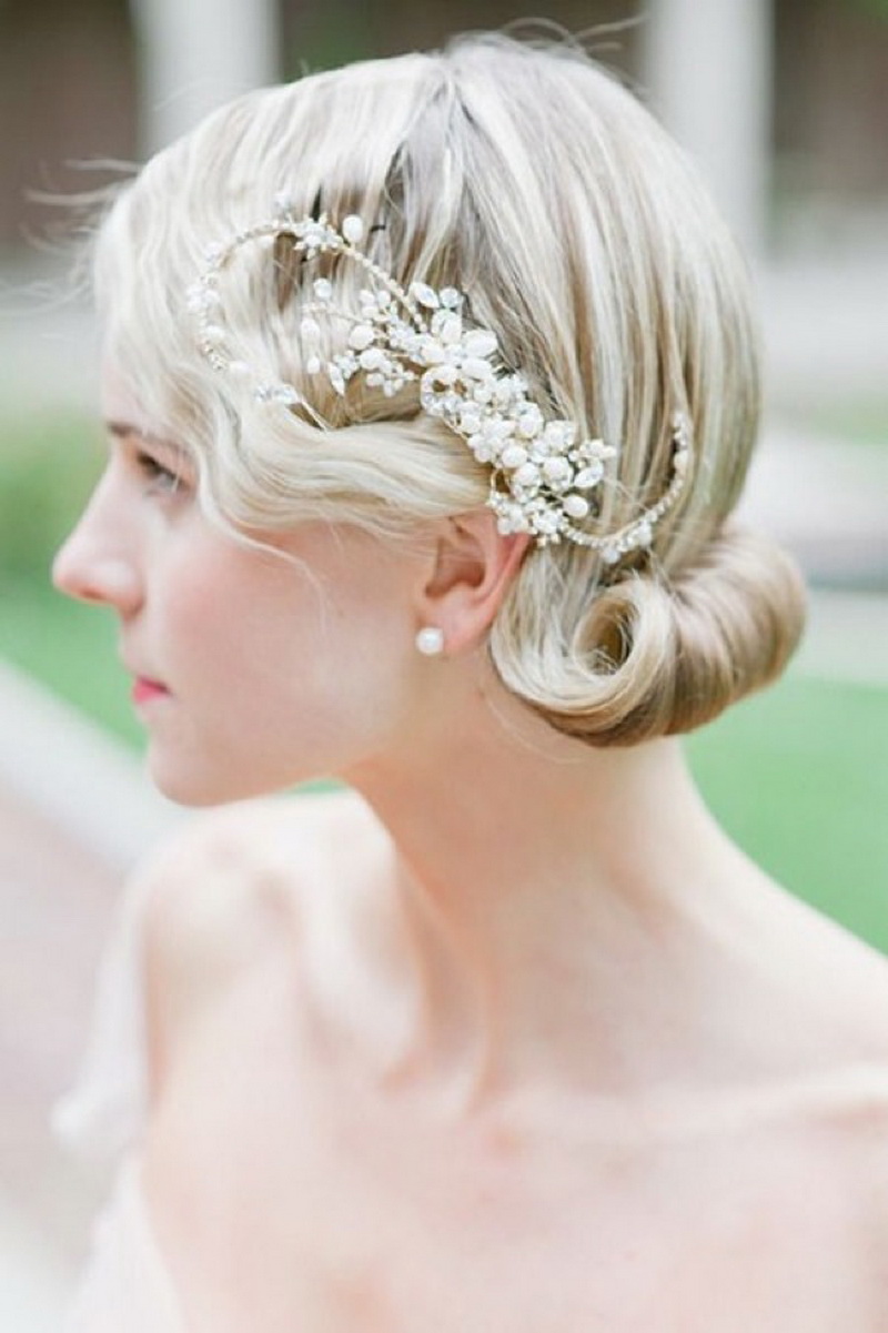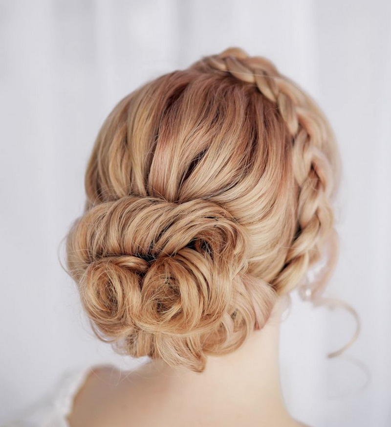 - bunches of large volume on a straight or oblique parting, in which diadem and hoop jewelery will be appropriate;