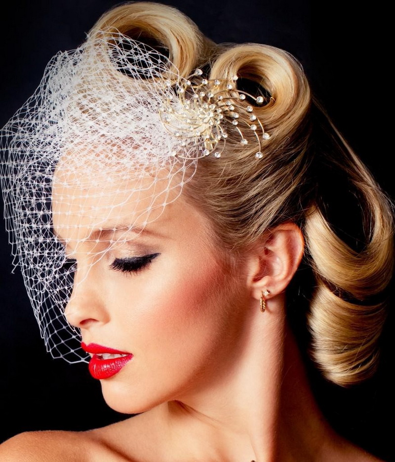 - Veillets are suitable for such a style as retro, as well as decorate simple smooth hairstyles, tails and braids.