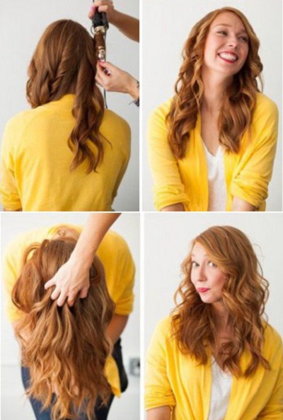 Watch for non-thermal ways to create light casual waves for long-haired young ladies worth a bunch. When clean hair dries, you need to carefully comb them, and then collect in one or more bunches at the back of the head. Strands near the neck and those that frame the face, you need to release and, twisting separately, fix with hairpins. After several hours, having dismissed the beam, you will see waves that look quite natural, and you can give them carelessness by slightly beating the hair up with your fingers.