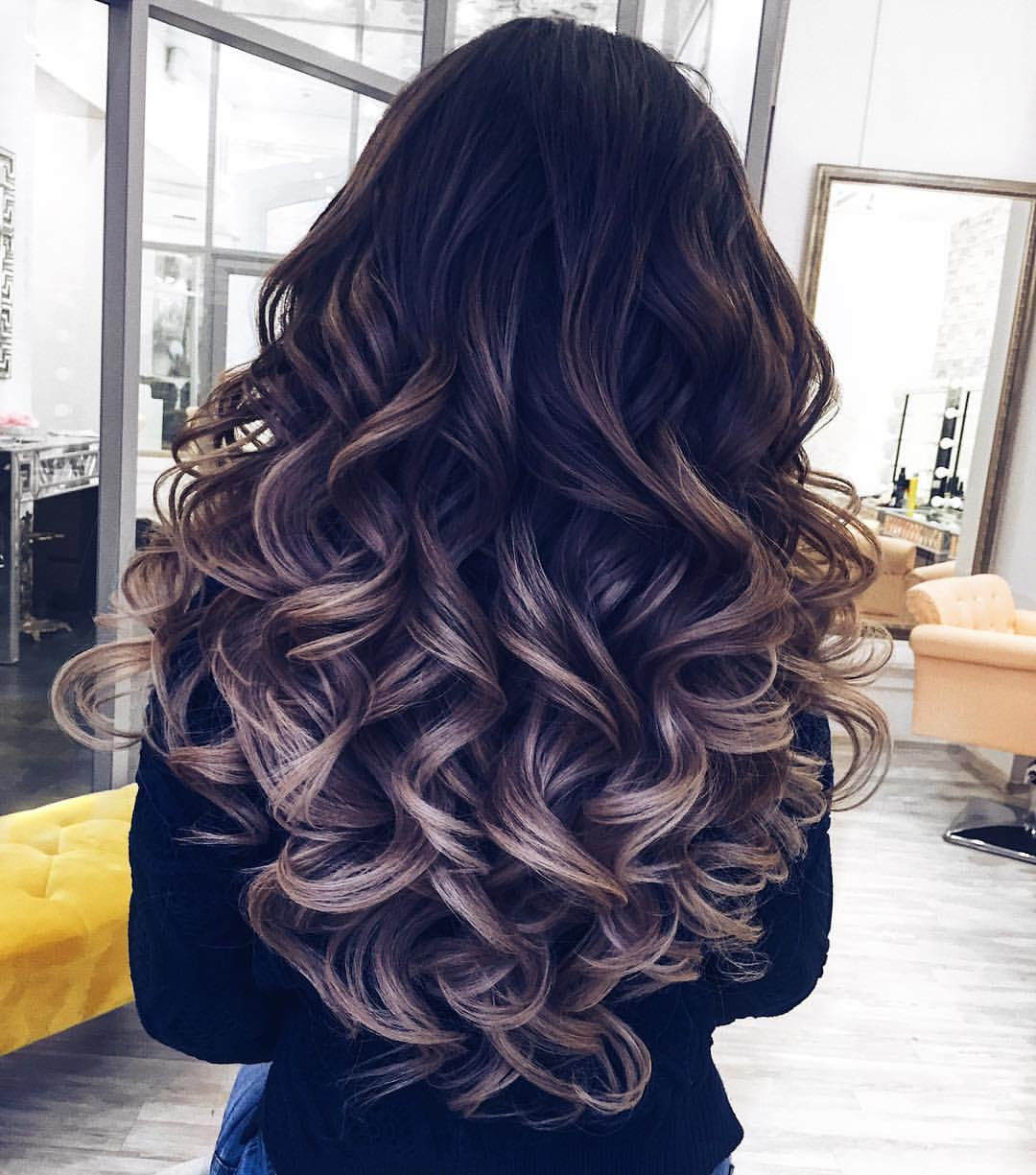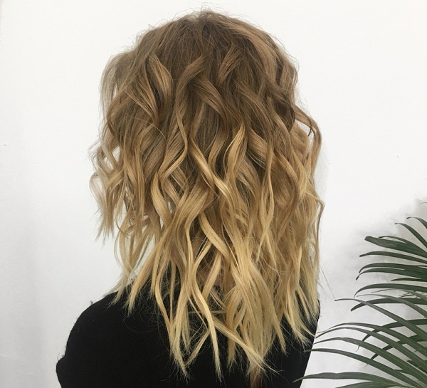 Large negligent curls look especially attractive on hair dyed using the ombre technique.