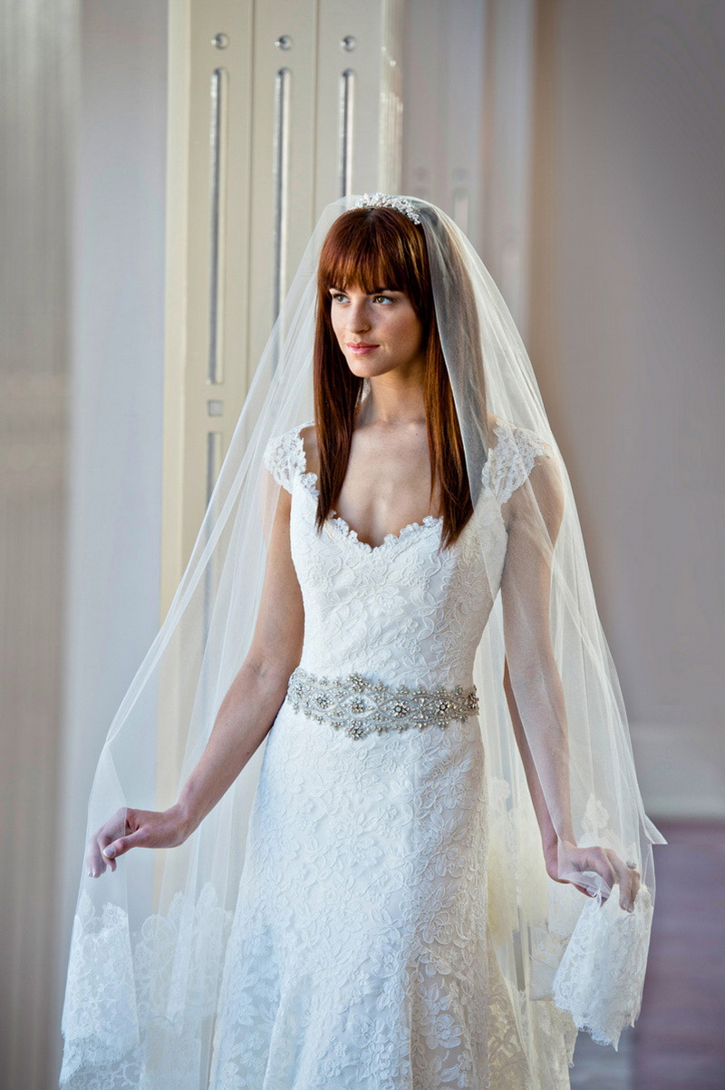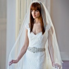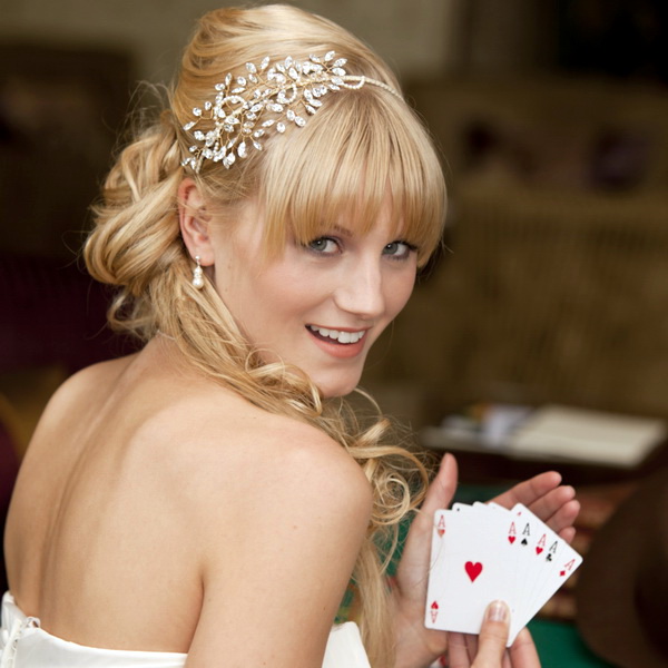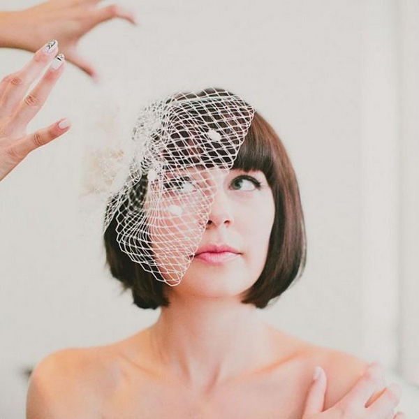 Although modern brides are increasingly deciding to appear without a veil, this accessory is still considered extremely popular, including for girls with bangs. If the image combines a complex hairstyle and straight bangs, then the veil should be simple and, best of all, from one layer. In the case when the styling is chosen as simple as possible and does not show loose hair, you can choose a rather lush veil, which consists of several layers. Finally, oblique bangs look organically with accessories of any variety. The use of the veil is accompanied by the selection of various decorations, including those for hair.