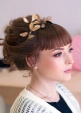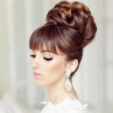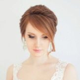 Wedding styling with bangs is also determined by the shape of the face. For example, oval allows you to choose any kind of bangs: both straight and to the side, and even of different lengths. For the wedding is best suited oblique bang or one that is laid on its side. For a round face, you should not use bangs at all, otherwise she will play against the girl. However, if the desire to emphasize and narrow the face is still there, then it is recommended to leave a few strands on the face or to cut a long fringe on the side. There is also an option to grow a long bang and comb it up, and then slaughter it with the help of stealth or decorative accessories.