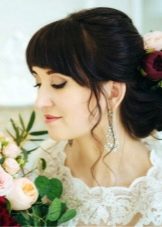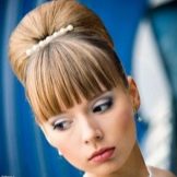 Often, brides picking up hairstyles for a wedding experience that this element of the haircut will not fit into the theme of the celebration. However, the situation is completely different. For example, a retro wedding literally requires a bang. Alternatively, it can be twisted around the forehead, creating large curls from the rest of the hair. In another case, all the hair is placed in a high babette, tied with a suitable tape, and the neat bangs remain unchanged. In addition, you can make a high tail. Wedding hairstyles boho celebrations also can not do without bangs. As a rule, the hair in front neatly stacked on both sides and fixed invisible, so as not to interfere. The remaining mass forms natural curls.