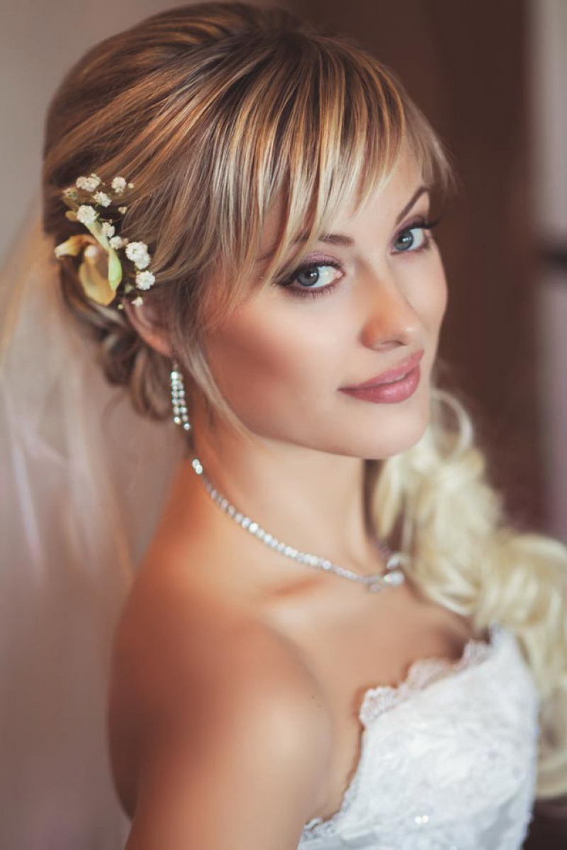 Before the wedding, any girl thinks about the perfect dresses and hairstyle. An exception are not brides with bangs. Possessing such a difficult haircut, it is doubly difficult for them to create their wedding image. These beauties need to first contact the stylist to find the most successful styling, and be sure to rehearse the festive look.