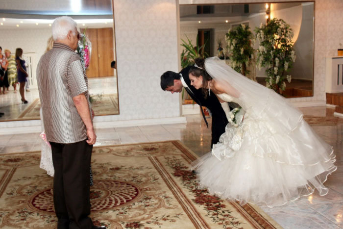 Having shed a sea of tears, you can finish the ritual with a bow from the bride and groom or warm hugs.