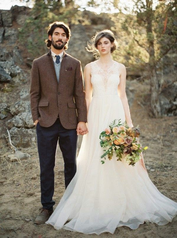 The groom should wear a shirt, trousers and vest. You can use denim material, however, it should not be scuffed and ragged decor.You can also choose a shirt with rolled up sleeves, a leather jacket. Suspenders will look spectacular. They also fit well in style. This direction allows you to add a little boldness and apply a handkerchief, an icon, an origami instead of a boutonniere. Hair can be the most extraordinary. Tousled hair will do.