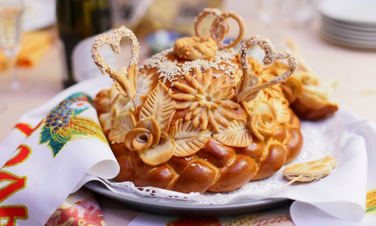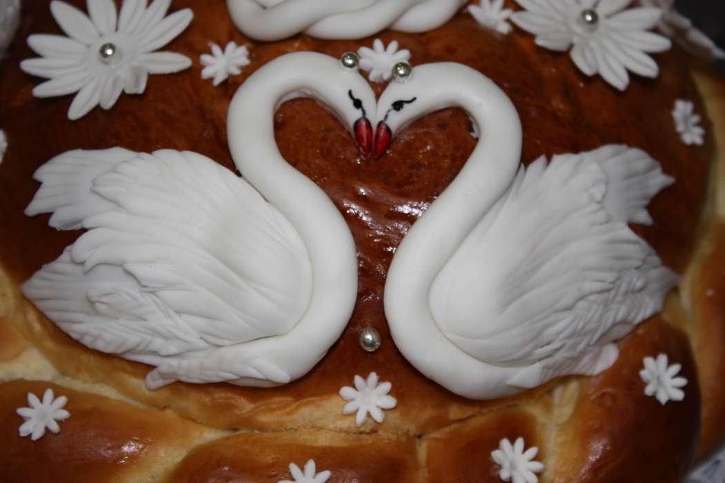 - The integral element of the loaf is pigeons. According to the tradition there should be two of them, since they symbolize peace and love. It may seem that cooking pigeons is an impossible task, but in reality the process is very simple. We make strips of dough about three centimeters long and half a centimeter wide. We tie knots at the ends of the strip. On one of them we make an incision with a knife to make a beak, and on the other several cuts to make a tail. Flatten a little bit of the foundation of our pigeon. Sharp subject draw wings on it. Pinch off feathers with small scissors. Pigeons are ready.