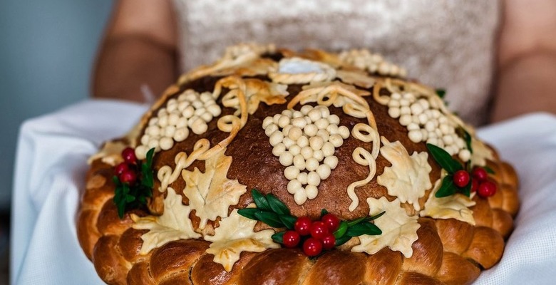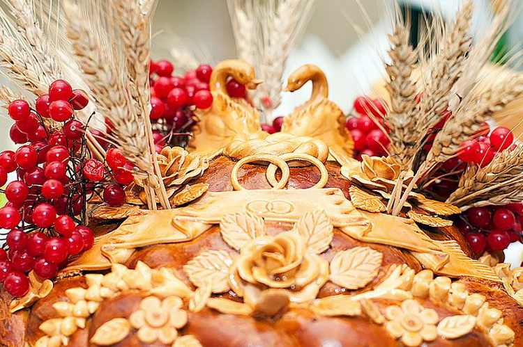 According to the tradition of our ancestors, at the wedding, parents should meet newlyweds in front of the house with a loaf in their hands. Loaf personifies marital happiness, fertility. The richer and more beautiful the loaf - the more happiness the newlyweds will have in family life. Therefore, its decoration attach great importance.