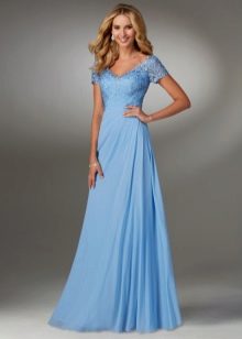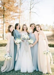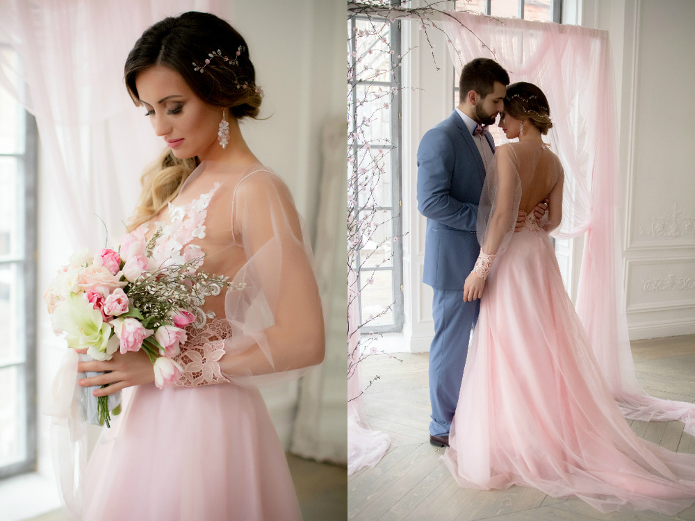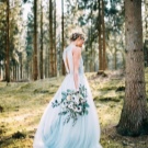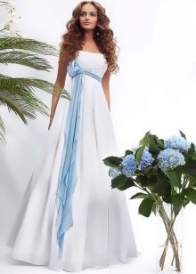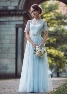 The bride dressed in a pale blue dress will also look impressive. This color will emphasize the whiteness of the skin. For dark skin, it is better to pick a dress more juicy blue color. If the bride wants to stay in a classic white dress, then you can order a beautiful blue light belt on the waist, as well as decorate her hair with blue accessories. In the same shades can be made lace on a wedding dress or jewelry.