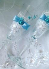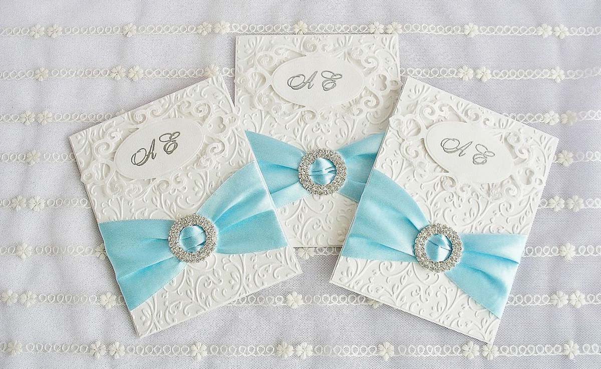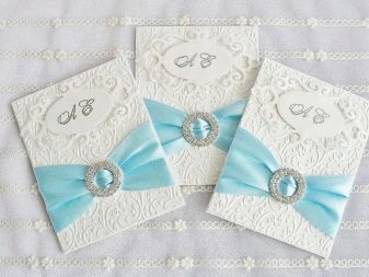 An excellent idea would be to make your own invitations. To this end, it is recommended to use thick paper of any color, decorated with harmonious blue beads, beads and other decorative elements. You can do the opposite and prepare the picturesque details of any shades on a blue background.