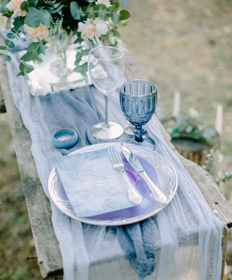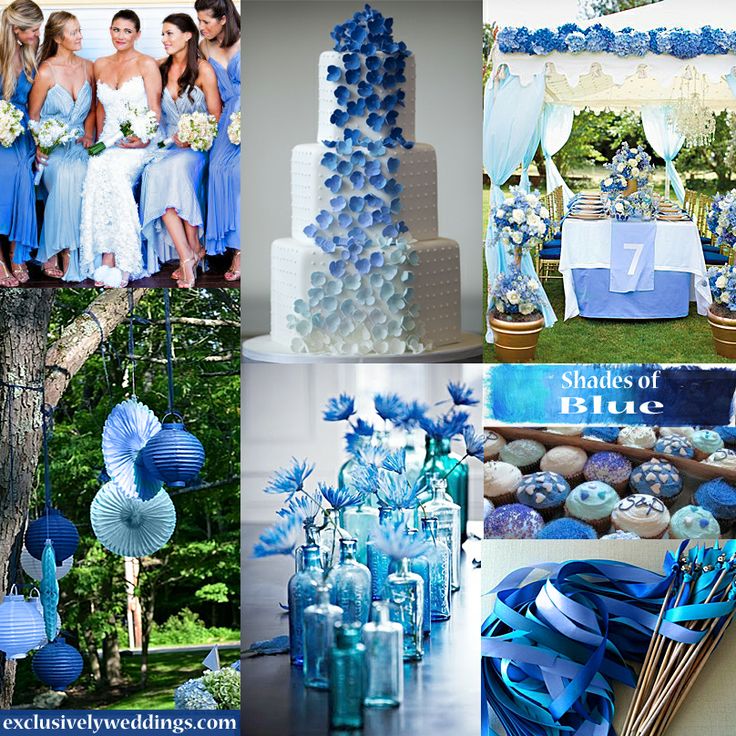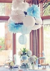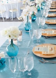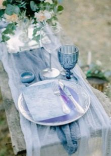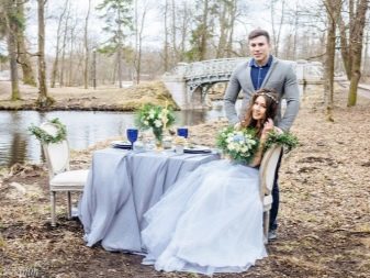 However, this color is worth taking and accuracy. It is important to combine it with the correct shades and not to overdo it, otherwise the holiday will be filled with a feeling of cold, will cause a passivity and apathy at a party. In addition, it is not necessary to use only the blue color, it can be different variations - heavenly, gray, dusty, blue and even violet shades.