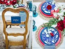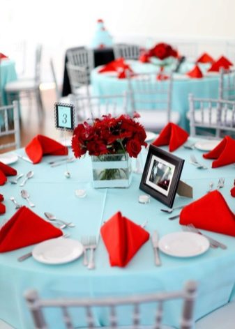 - Red. A bold and very expressive combination. One option is to combine the blue, white and red colors and hold a sea party. Usually this theme is used in cases where the groom is a sailor.