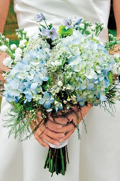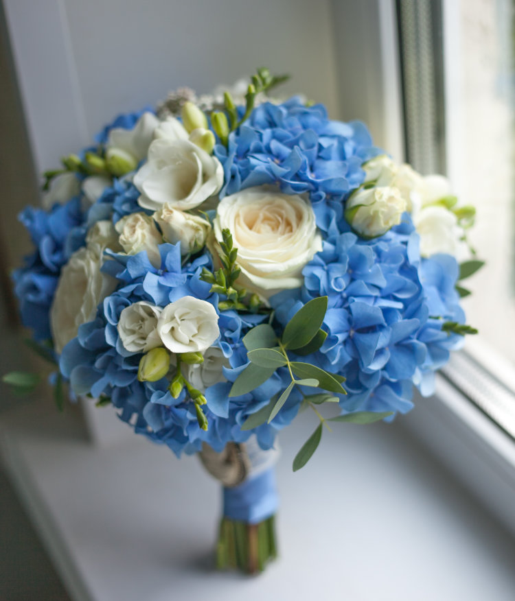 In this case, difficulties should arise. Nature has given many beautiful flowers with blue and blue petals. When composing a bouquet, you can use cornflowers, forget-me-nots, hydrangea, bells, lavender. A very beautiful solution would be a composition of blue and white flowers, that is, orchids, lilies of the valley or lilies can be included in the bouquet. White-blue flowers look fresh, gentle, feminine.
