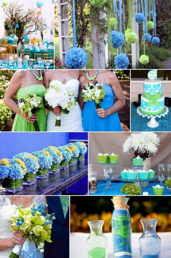 Blue is a deep pastel color that is somewhat associated with cold. In order not to infect guests with a sense of coolness, it is recommended to combine several colors in the design of the wedding. It is important to choose the right shade of blue - there are also several variations: these are tones with the inclusion of gray, violet or even green reflux. Not all shades are in harmony with blue. The following options will be most successful.