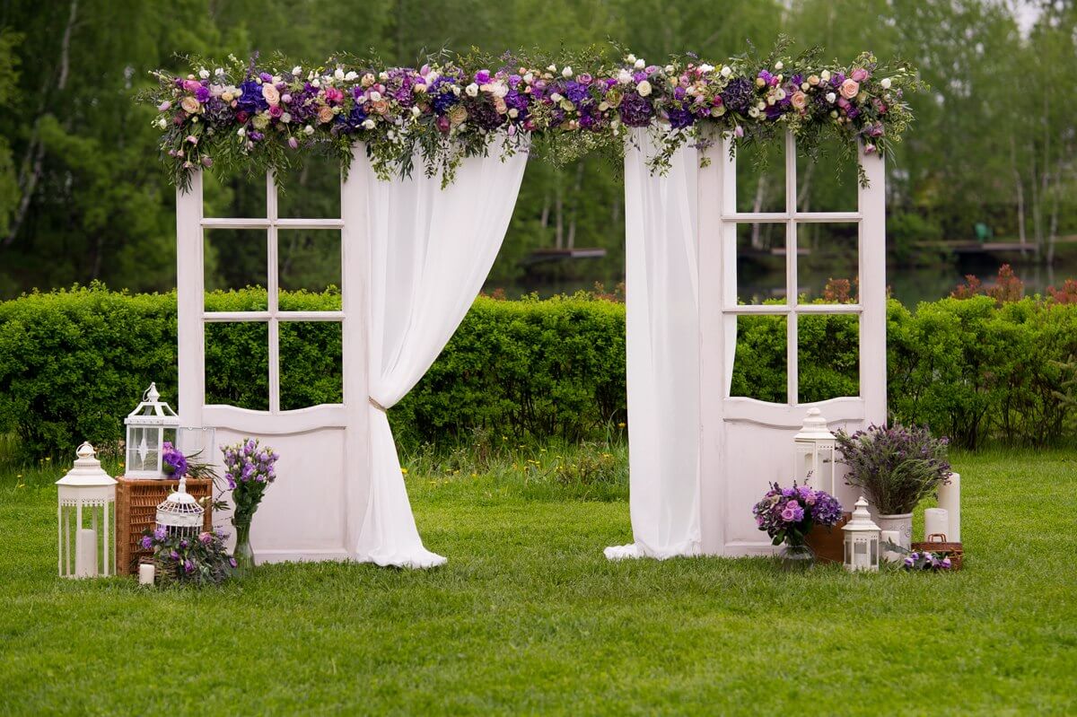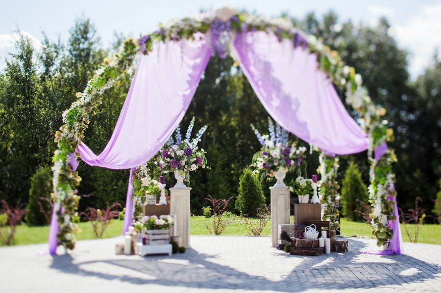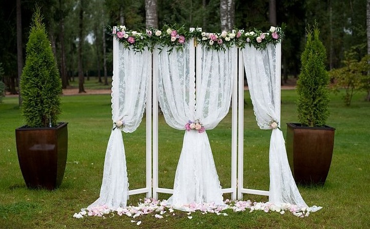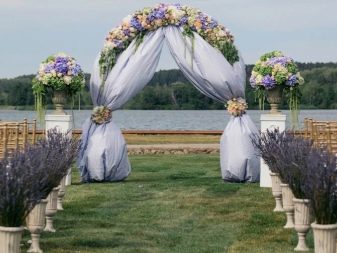 Very popular flower arches can be made with your own hands, you just need to choose a good metal construction, suitable plants: wildflowers, lavender, greenery, willow, and accessories, such as satin ribbons in pastel colors.