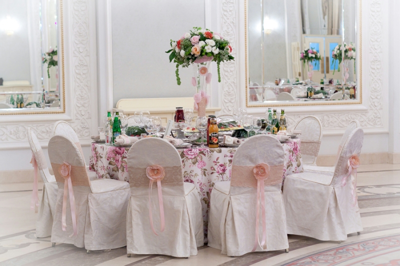 If weather conditions and other reasons do not allow a wedding in nature, as an alternative, you can choose a spacious and bright restaurant. A small decor will allow you to decorate the banquet room in accordance with the style of the wedding.
