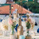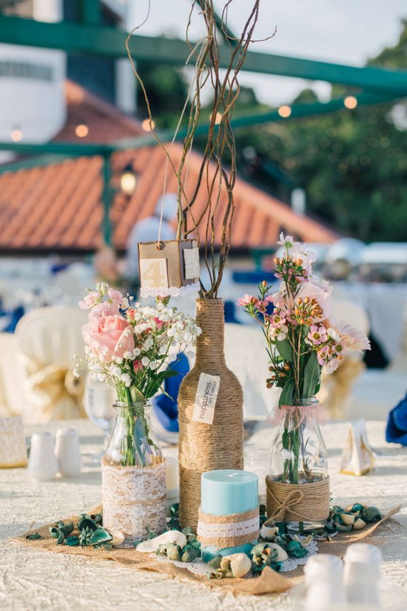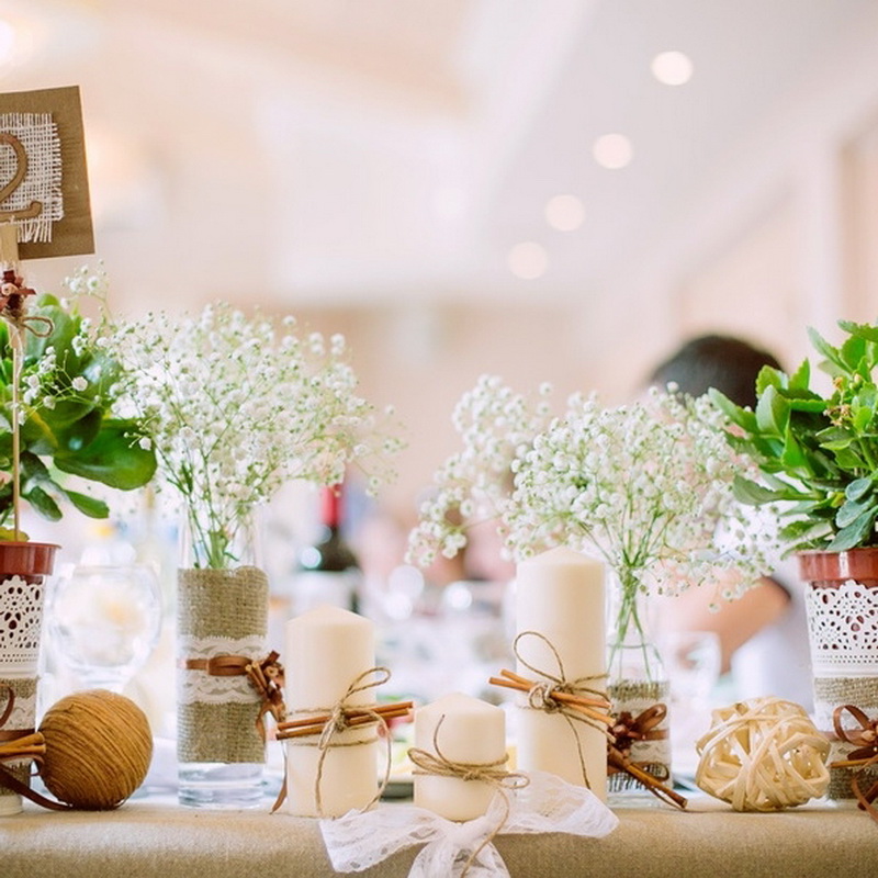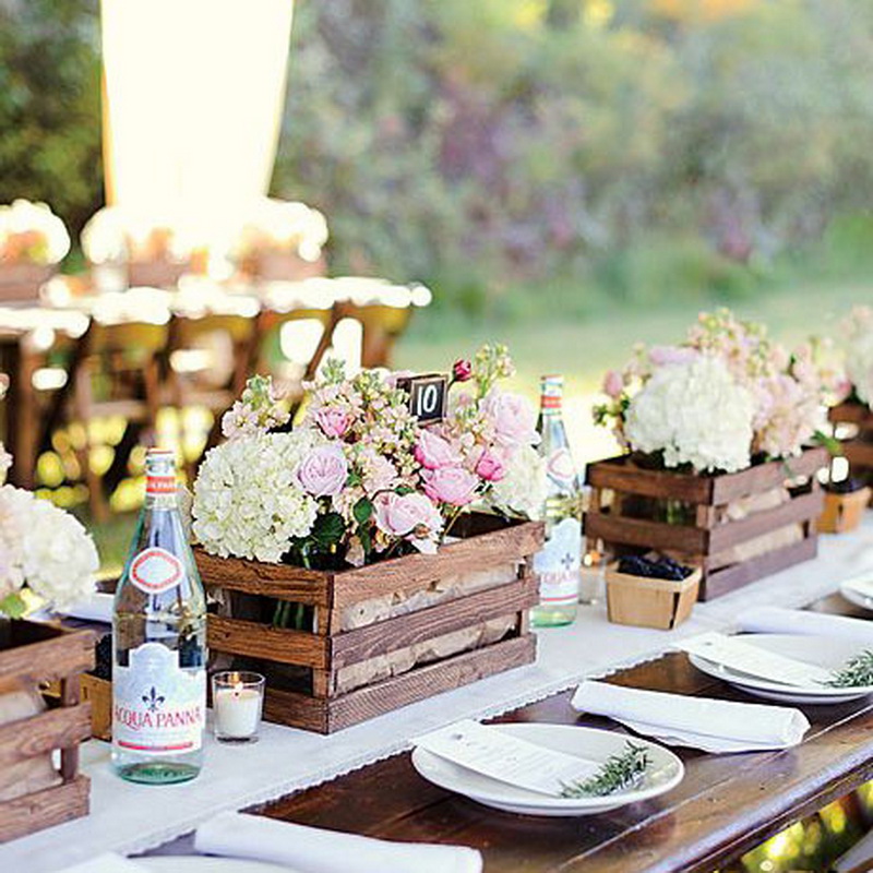 - Glass jars, iron buckets, wooden barrels, carts will be successful elements of the decor. You can use the elements of the decor, made by hand. This will successfully complement the style direction and help make the wedding more creative.