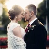 Autumn wedding is attractive riot of colors. At this time of the year, it is worth looking at the parks and gardens. It is there that one can successfully celebrate the celebration. It is allowed to choose a restaurant with an open terrace, because if it rains suddenly, it will be easy to hide inside. In the fall, the most colorful and interesting pictures are obtained. As a background, you can choose yellowed leaves, a lake with swimming ducks.