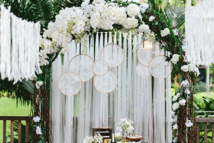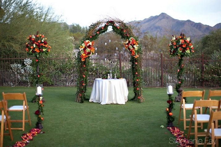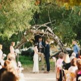 If you have a summer wedding, you can organize it on the bank of the river or the sea.In order for the occasional rain not to be taken by surprise, you should take care of tents. Be sure to put tracks or boards on the ground or sand. It will become an ornament of style and will help to move easier.